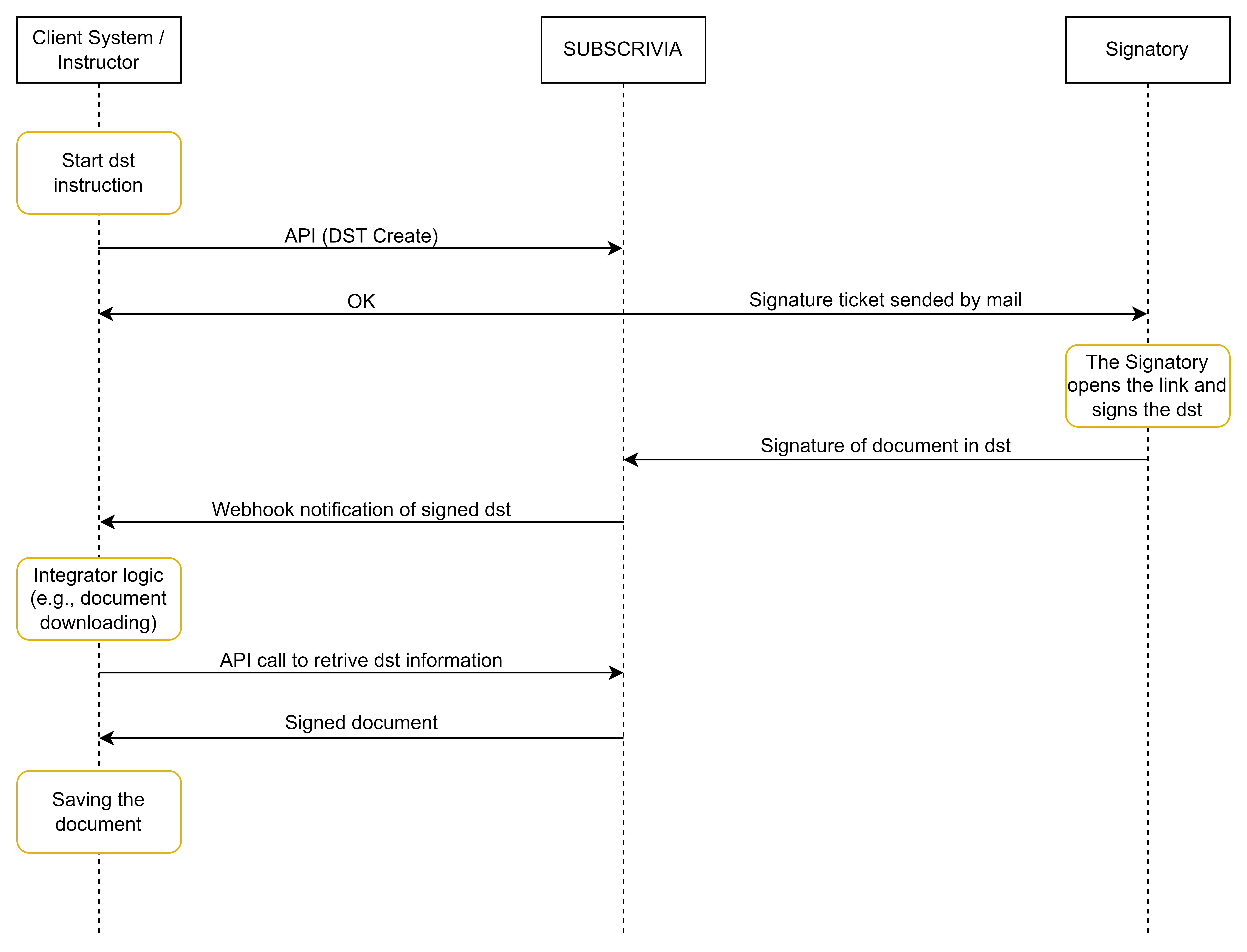 Note: In the Create a DST API there are some examples of which include electronic signature with click, electronic signature with OTP, graphometric, advanced and qualified signature.