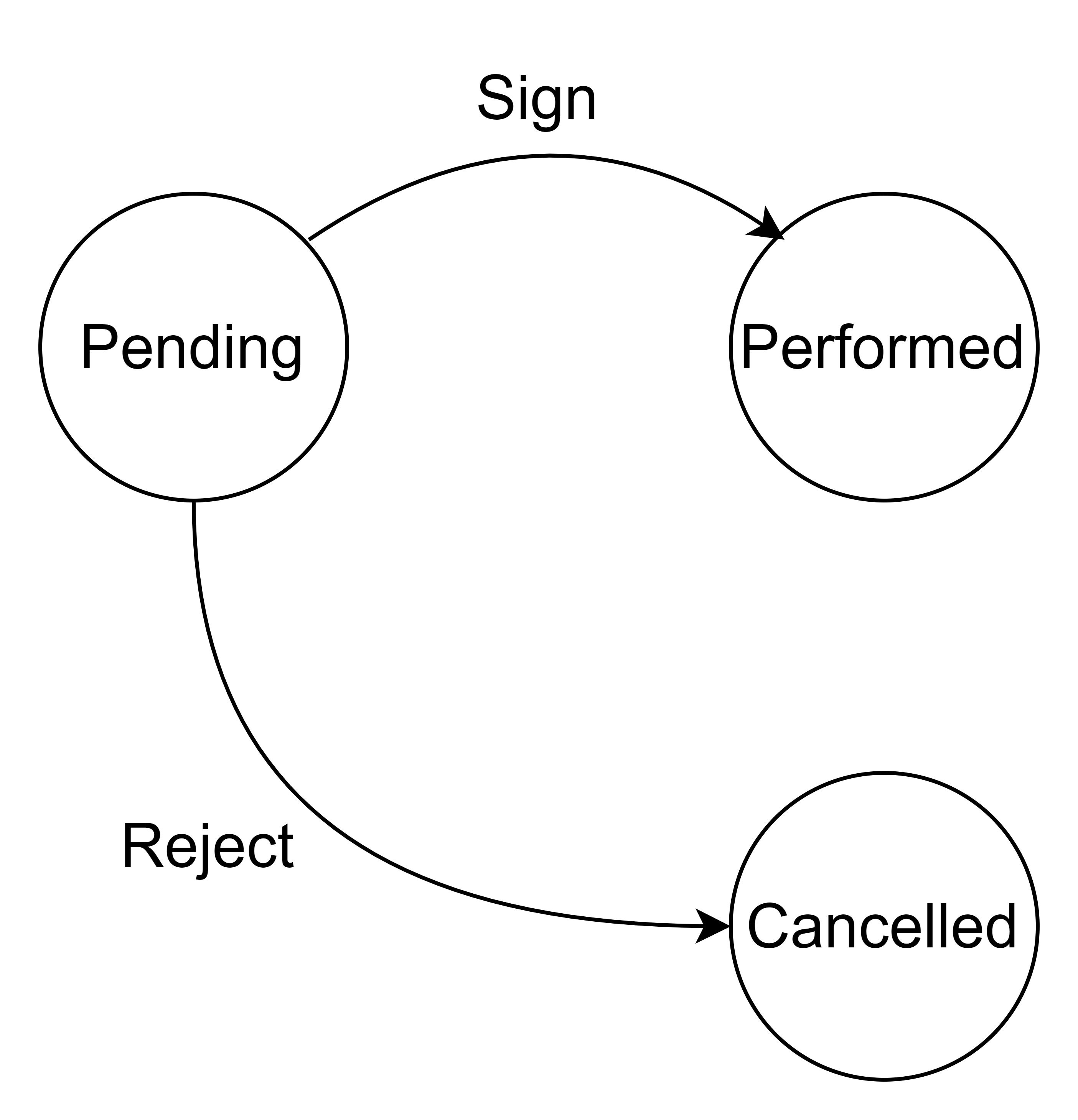 | pending | dst has been successfully created and is waiting for all users to sign |